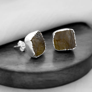 Crezh Moldavite Natural Gemstone 925 Sterling Silver Handmade Stud Earring