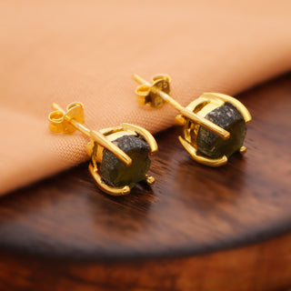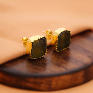 Crezh Moldavite Natural Gemstone Gold Filled in 925 Sterling Silver Handmade Stud Earring