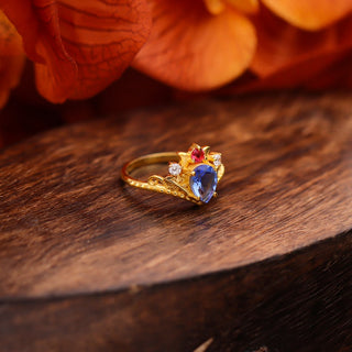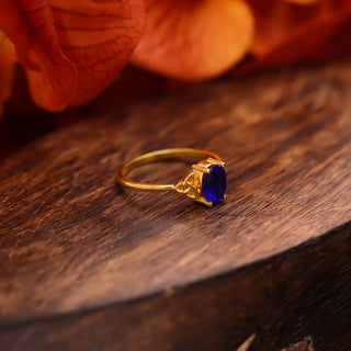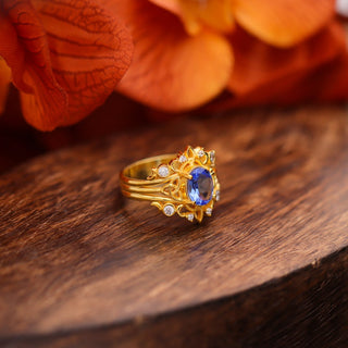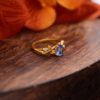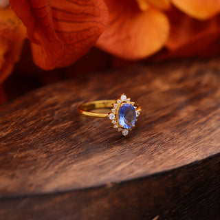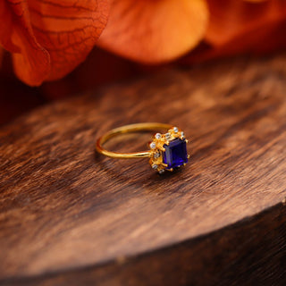 Tanzanite Gemstone Ring, Tanzanite & Moissanite 14k gold Plated Art Deco unique wedding Ring, promise Anniversary ring, Gift For Her