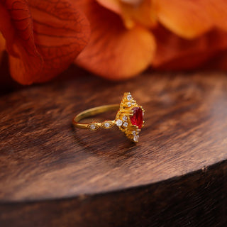 Red Garnet Ring & Mossianite 14k gold Plated Art Deco unique wedding Ring, promise Anniversary ring, Gift For Her
