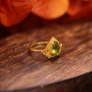 Green Peridot Gemstone Ring, Peridot 14k gold Plated Art Deco unique wedding Ring, promise Anniversary ring, Gift For Her