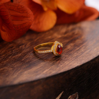 Red Garnet & Moissanite Ring 14k gold Plated Art Deco unique wedding Ring, promise Anniversary ring, Gift For Her