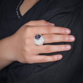 African Amethyst Raw Ring, Handmade Gemstone Jewelry, 925 Sterling Silver, Women's Statement Ring