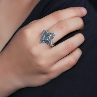 Labradorite Ring & Blue Topaz Ring, 925 Sterling Silver, Designer Ring For Women's