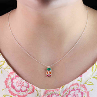 Garnet & Emerald With Crystal Gemstone Necklace 925 Sterling Silver by Harshita Jewellery