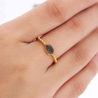 NATURAL MOSS AGATE STONE RING, HEXAGON SHAPE GEMSTONE, 925 SILVER RING WITH 18KT GOLD PLATED