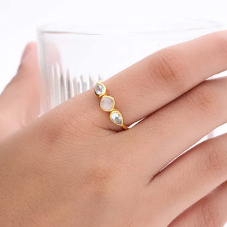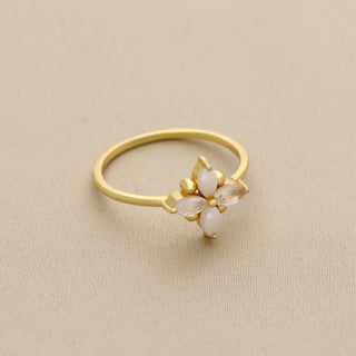 FLOWER SHAPE WHITE MOONSTONE GEMSTONE RING, 925 SILVER RING PLATED WITH 2 MICRON 18KT GOLD