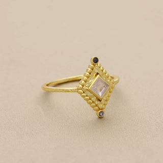 NATURAL MOON STONE AND SWISS BLUE TOPAZ RING, SQUARE SHAPE GEMSTONE, 925 SILVER 18KT GOLD PLATED