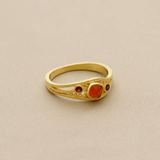NATURAL CARNELIAN STONE RING, ROUND SHAPE GEMSTONE, 925 SILVER 18KT GOLD PLATED