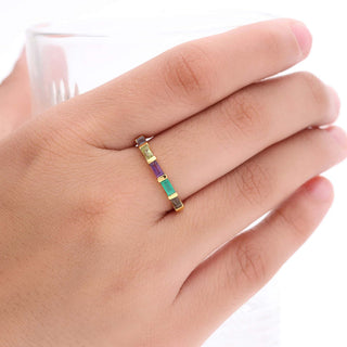 NATURAL MULTI STONE RING, BAGUETTE SHAPE GEMSTONE, 925 SILVER 18KT GOLD PLATED
