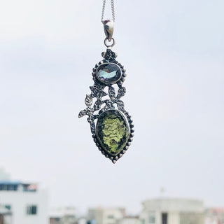 Genuine Moldavite & Mystic Topaz Pendant, 925 Sterling Silver Handmade Pendant, Moldavite Gemstone Pendant, Gift For Women's