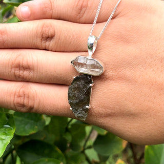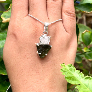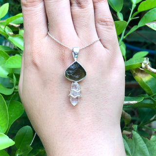 Genuine Moldavite & Herkimer Rough Pendant, 925 Sterling Silver Handmade Pendant, Moldavite Gemstone Pendant, Gift For Women's