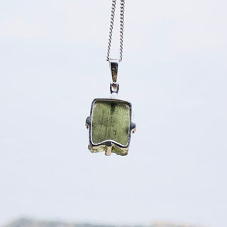 Authentic Moldavite Pendant, Natural Gemstone Jewelry, 925 Sterling Silver, Handmade Jewelry Gift, Christmas Silver Necklace, Gift For Her