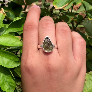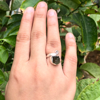 Natural Raw Moldavite Ring, 925 Solid Sterling Silver Czech Republic Raw Gemstone Handmade Jewelry Ring Gift For Her