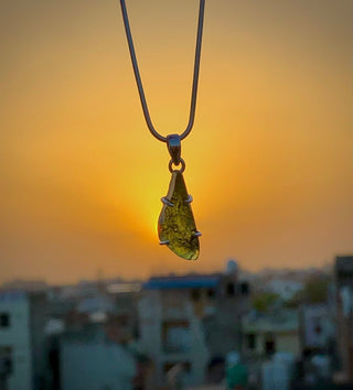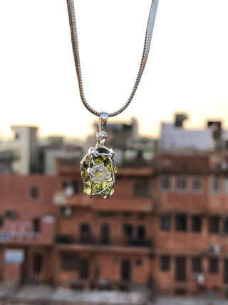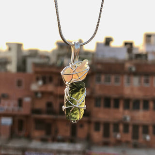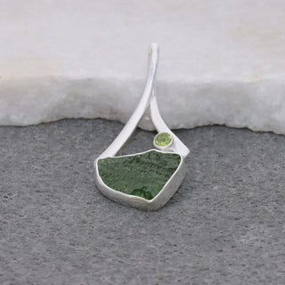 Genuine Moldavite Rough With Peridot Pendant 100% Natural With Certified Gemstone From Czech Republic 925 Sterling Silver Handmade Jewelry