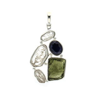 Moldavite, herkimer and Blue Sapphire pendant, genuine gemstone pendant, sterling silver handmade pendant, 100% genuine gemstone