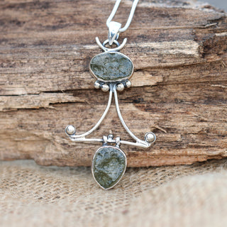 Genuine Moldavite Rough Pendant 100% Natural With Certified Gemstone From Czech Republic 925 Sterling Silver Handmade Designer Jewelry