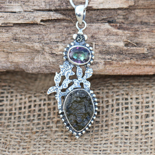 Moldavite Mystic Topaz pendant, genuine gemstone pendant, sterling silver handmade pendant, 100% genuine with certified gemstone