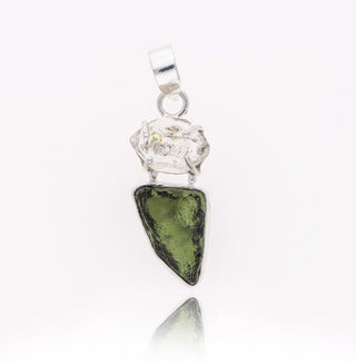 Moldavite herkimer pendant, genuine gemstone pendant, sterling silver handmade pendant, 100% genuine with certified gemstone