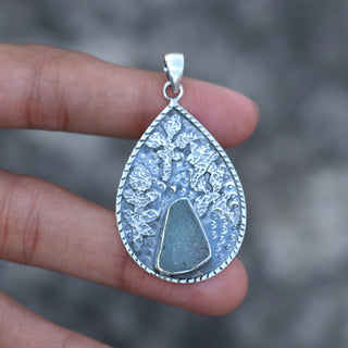 Raw Aquamarine Pendant, Sterling silver Pendant, March Birthstone, Handmade Pendant, Natural Aquamarine, Statement Boho Everyday Pendant