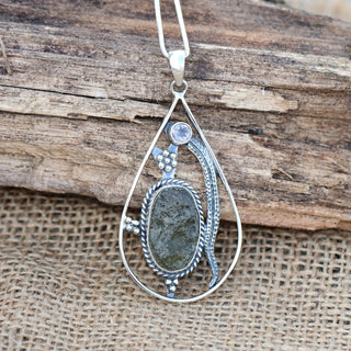 Moldavite Amethyst pendant, genuine gemstone pendant, sterling silver handmade pendant, 100% genuine with certified gemstone