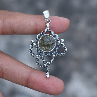 Genuine Moldavite Rough Pendant 100% Natural With Certified Gemstone From Czech Republic 925 Sterling Silver Handmade Designer Jewelry