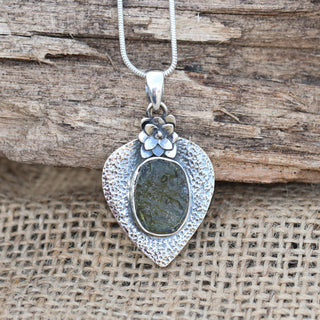 Moldavite Peridot pendant, genuine gemstone pendant, sterling silver handmade pendant, 100% genuine with certified gemstone