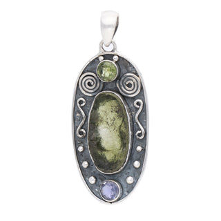 Moldavite Peridot Amethyst pendant, genuine gemstone pendant, sterling silver handmade pendant, 100% genuine with certified gemstone