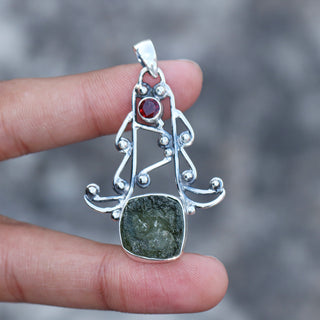 Moldavite Garnet pendant, genuine gemstone pendant, sterling silver handmade pendant, 100% genuine with certified gemstone
