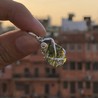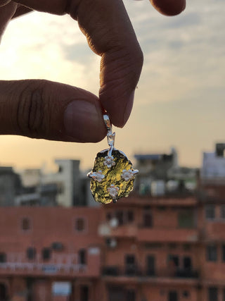 Moldavite Rough Pendant 925 Sterling Silver Handmade Designer Jewelry