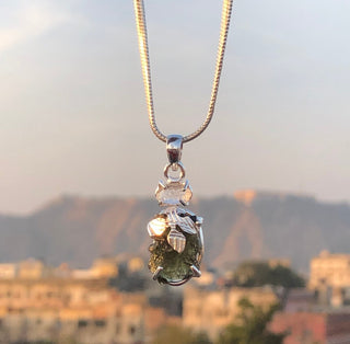 Genuine Moldavite & Herkimer Rough Pendant, 925 Sterling Silver Handmade Pendant, Moldavite Gemstone Pendant, Gift For Women's