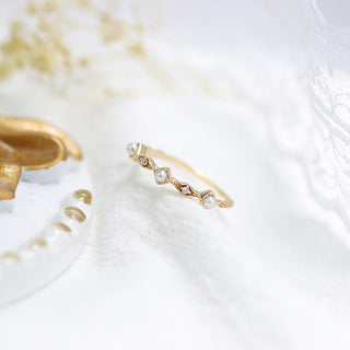14k Gold Pearl Engagement Ring with Tiny Diamonds, Solid Gold Freshwater Pearl Ring, Dainty Minimalist Promise Rings, Handmade Stacking Ring