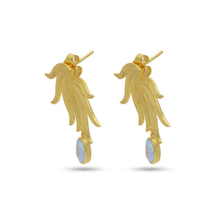 LEAF SHAPE FIRE OPAL GEMSTONE 925 STEALING SILVER PUSH BACK By Harshita Jewellery