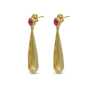 RUBY GEMSTONE MINIMALIST DANGLE DROP EARRING, 925 STEALING SILVER PUSH BACK By Harshita Jewellery
