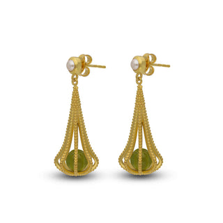 PEARLS & PERIDOT MINIMALIST DANGLE DROP EARRING, 925 STEALING SILVER PUSH BACK