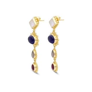 MULTI STONE MINIMALIST EARRING STEALING SILVER PUSH BACK By Harshita Jewellery