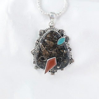 Natural Turtella Jasper, Carnelian, And Aquamarine Pendant By Harshita Jewellery