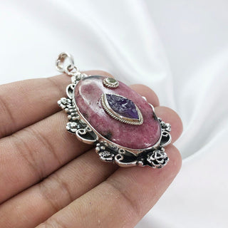 Natural Rhodonite, Peridot & Amethyst Pendant By Harshita Jewellery