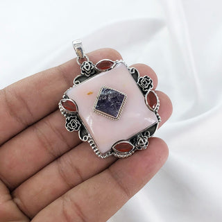 Natural Pink Opal, Amethyst & Carnelian Pendant By Harshita Jewellery