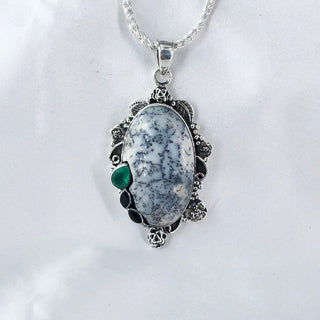 Natural Dendrite Opal, Black Onyx And Green Onyx Pendant By Harshita Jewellery