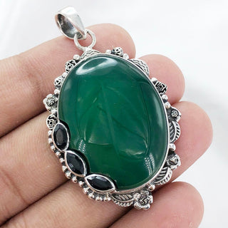 Natural Chrysoprase, Black Onyx & Carnelian Pendant By Harshita Jewellery