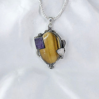 Natural Tiger's Eye, Rose Quartz, Amethyst, Pendant By Harshita Jewellery