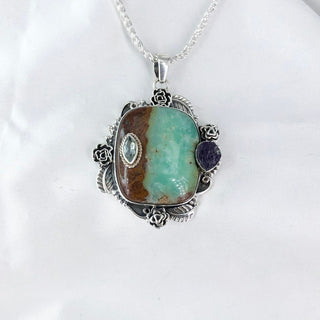Natural Chrysoprase, Blue Topaz & Raw Amethyst Pendant By Harshita Jewellery