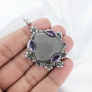 Silver Sheen Obsidian and Amethyst Pendant By Harshita Jewellery