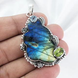 Fire Labradorite, Blue Topaz & Peridot Pendant By Harshita Jewellery