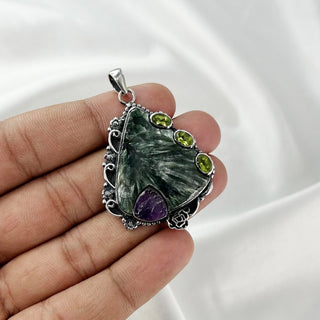 Natural Seraphinite, Amethyst & Peridot Pendant By Harshita Jewellery