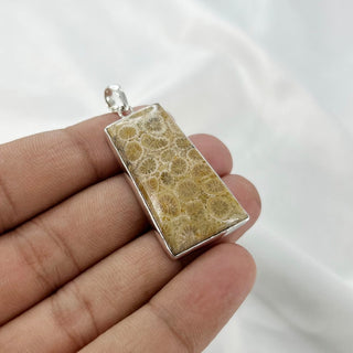 Natural Fossil Coral Gemstone Pendant By Harshita Jewellery