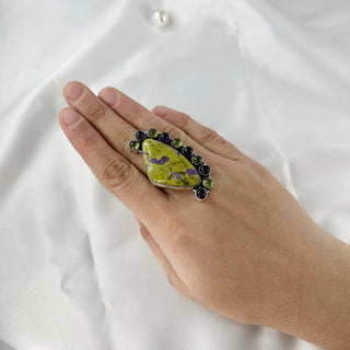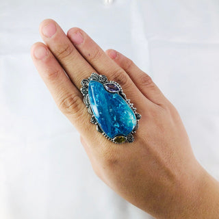 Natural Chrysocolla, Amethyst & Peridot Ring By Harshita Jewellery