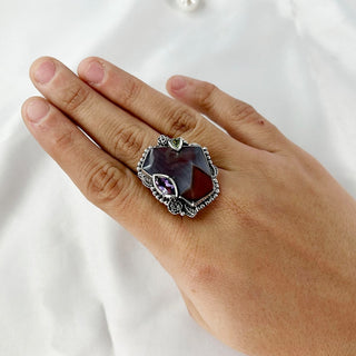 Natural Botswana agate Ring, Amethyst & Peridot Gemstone Ring By Harshita Jewellery