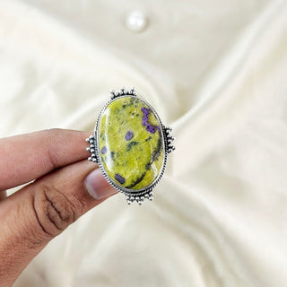Atlantisite Stichtite Ring, Natural Stichtite, Amethyst & Prehnite Gemstone Ring By Harshita Jewellery